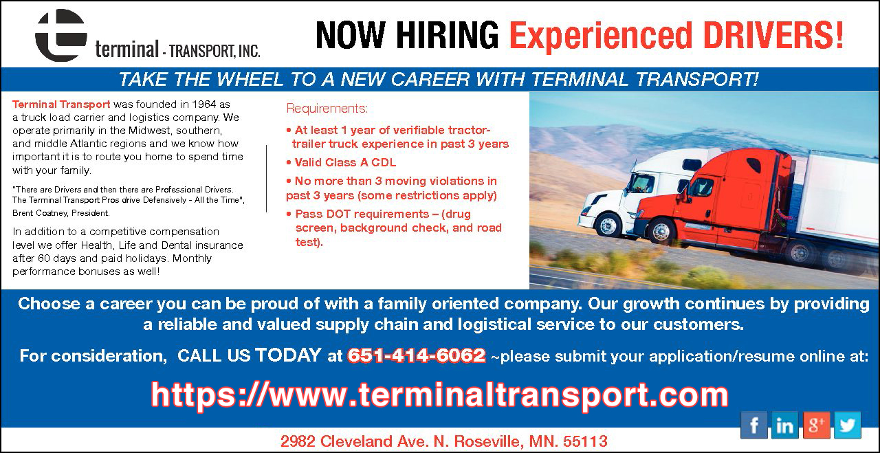Terminal Transport will strive to provide quality logistics services to our customers.