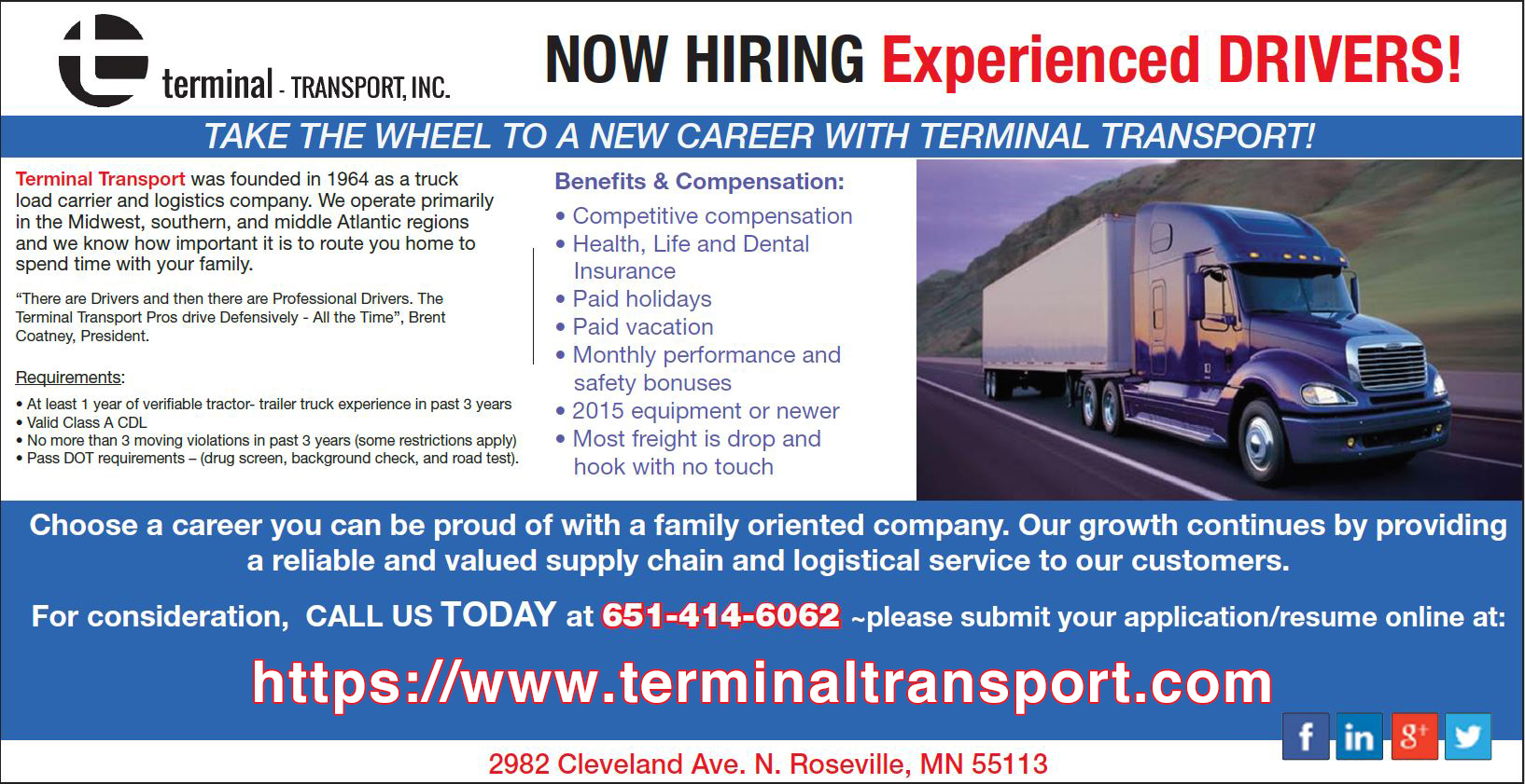 Terminal Transport Personnel are actively involved and take personal interest in making sure that all of our services are completed to your satisfaction. Our staff has contributed immeasurably to our success and will work to succeed in achieving the same goal with each & every shipment.